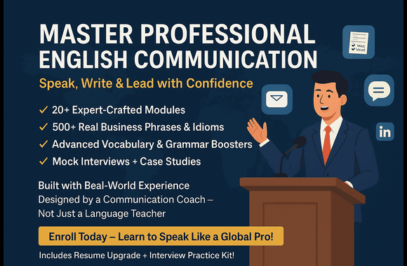 This course is designed to help you become fluent and professional in English communication, both in speaking and writing. You will learn essential skills to succeed in various professional and social situations where English is used. From mastering grammar and vocabulary to improving pronunciation and writing style, this course covers all aspects to enhance your English proficiency.